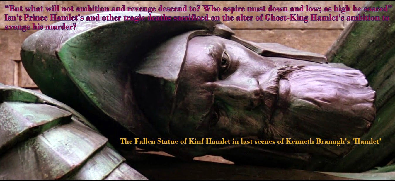 Second thing when play ends the camara goes near to the sculpture of King Hamlet. It marks that how much great you are you have to face fall in your life.